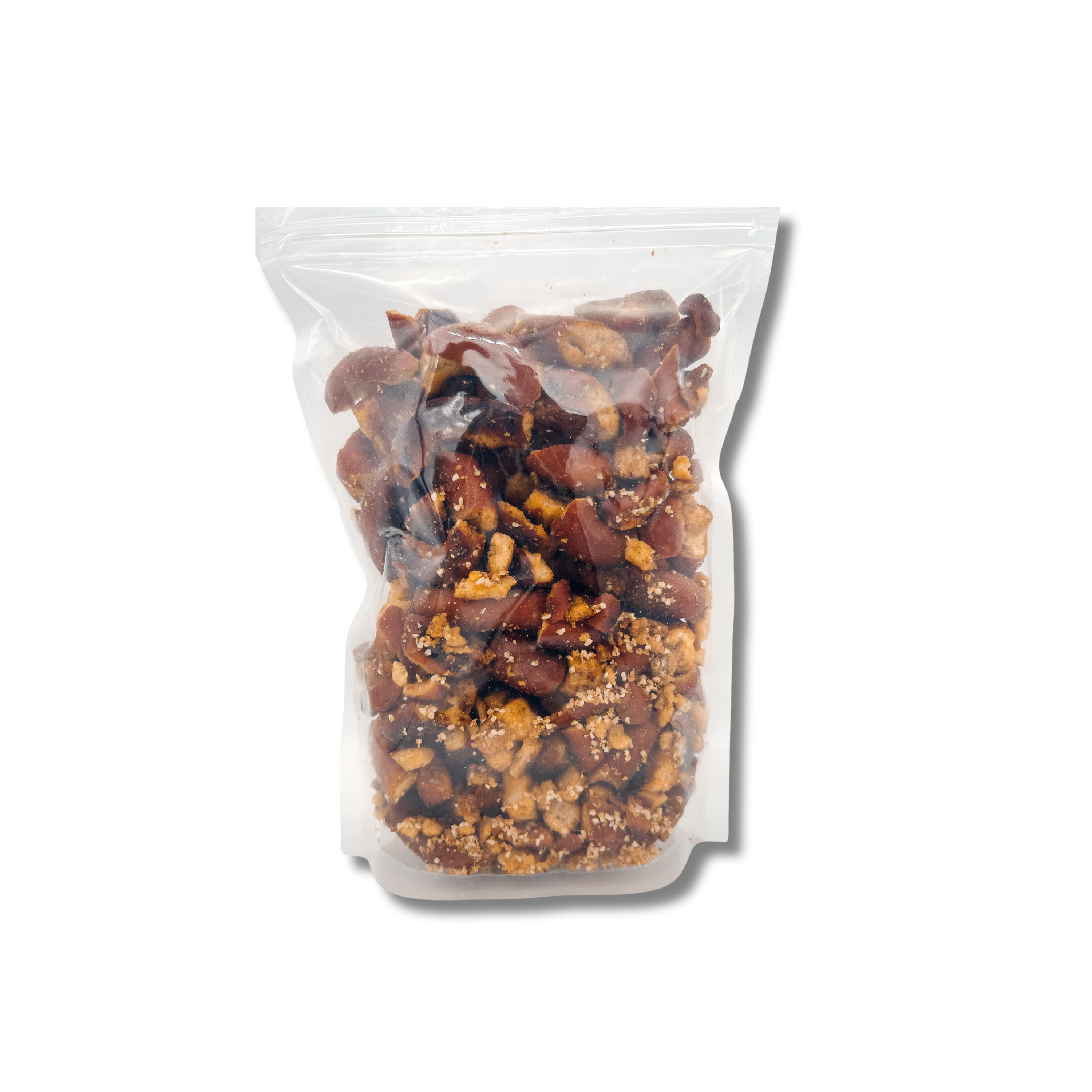 Enjoy the perfect crunch with our bite-size sourdough pretzel chunks, featuring an incredible blend of tangy mustard, sweet honey, and a mild onion flavor.