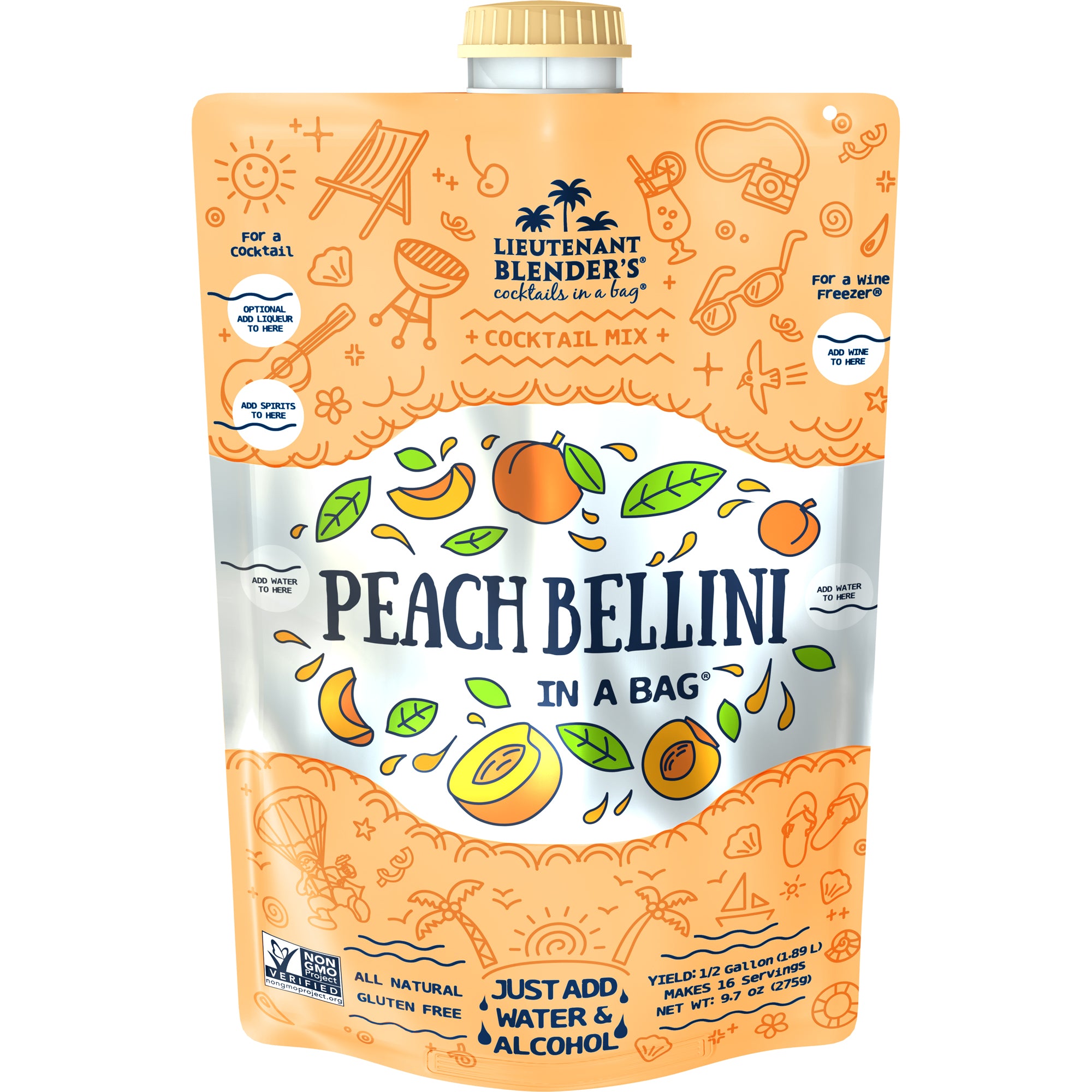 Why wait for brunch to enjoy something sparkly and sweet? Lt. Blender’s “Cocktails in a Bag: Peach Bellini” lets you toast to sunshine and good times wherever, whenever! Juicy, sun-ripened peaches blend perfectly for that authentic Italian brunch feel—no fancy bartender needed.